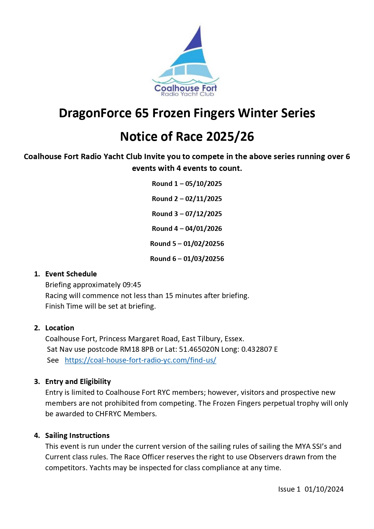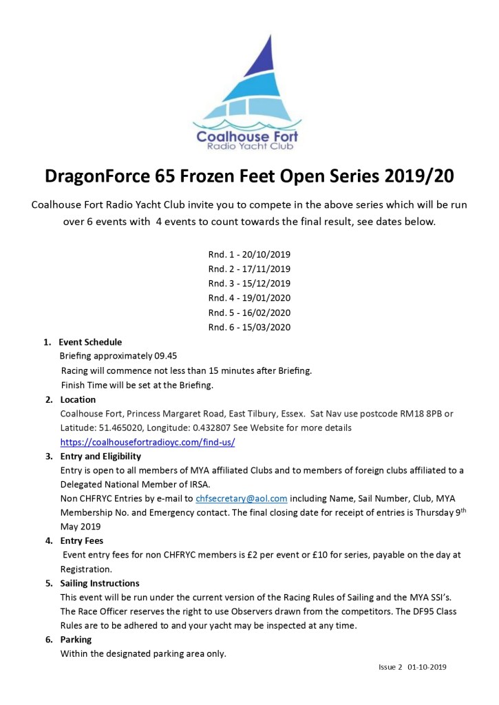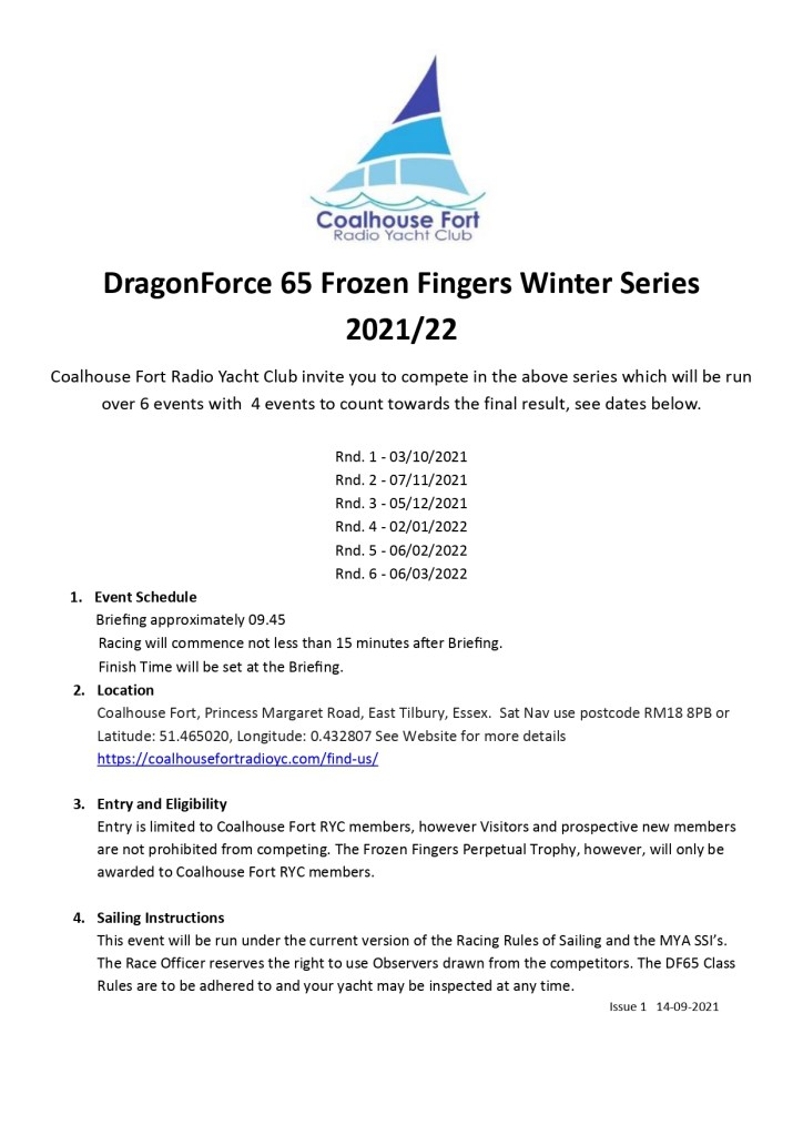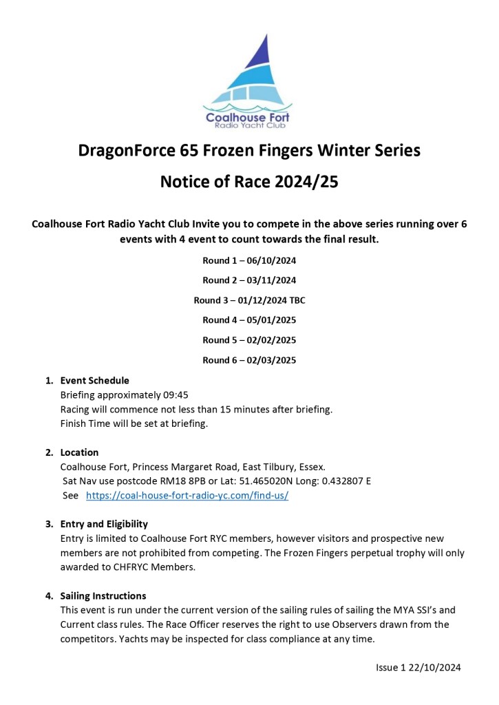 Its almost time for the Frozen Fingers/Feet series to start,please see the following Notice Of Race for both series. There are the odd spare boats available if anyone would like to have a go.