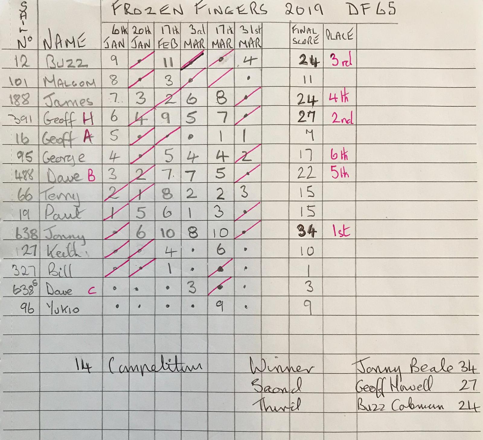 31.3.19 Sunday final round of the DF65 Frozen Fingers.