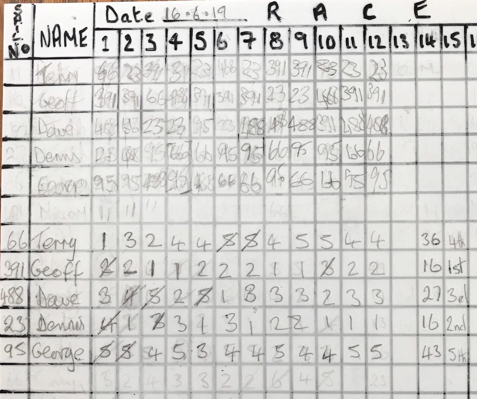 Sadly we lost James after lunch, but managed to complete a further 8 races, with Angela changing down to B rig from race 12 & remaining competitive against the A+ rigs.