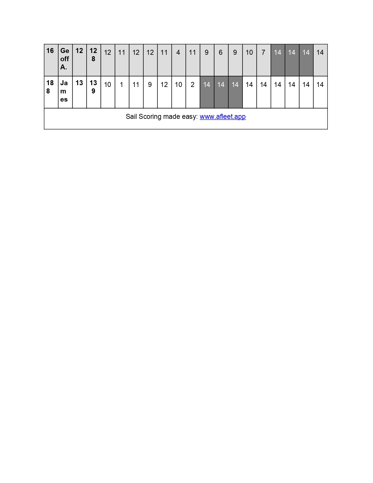Sorry, as someone Pointed out the points were wrong plus he recons presented badly, a pity really almost up and running with the A fleet app ( tablet and app paid for by me ) and I have no complaint about that at all, so these are the revised points , ( no change in the order) still a well done to Geoff. Hopefully our next results will be all neat and tidy to please even the perfectionist amongst us👎