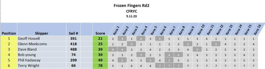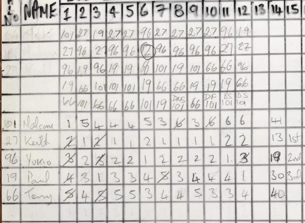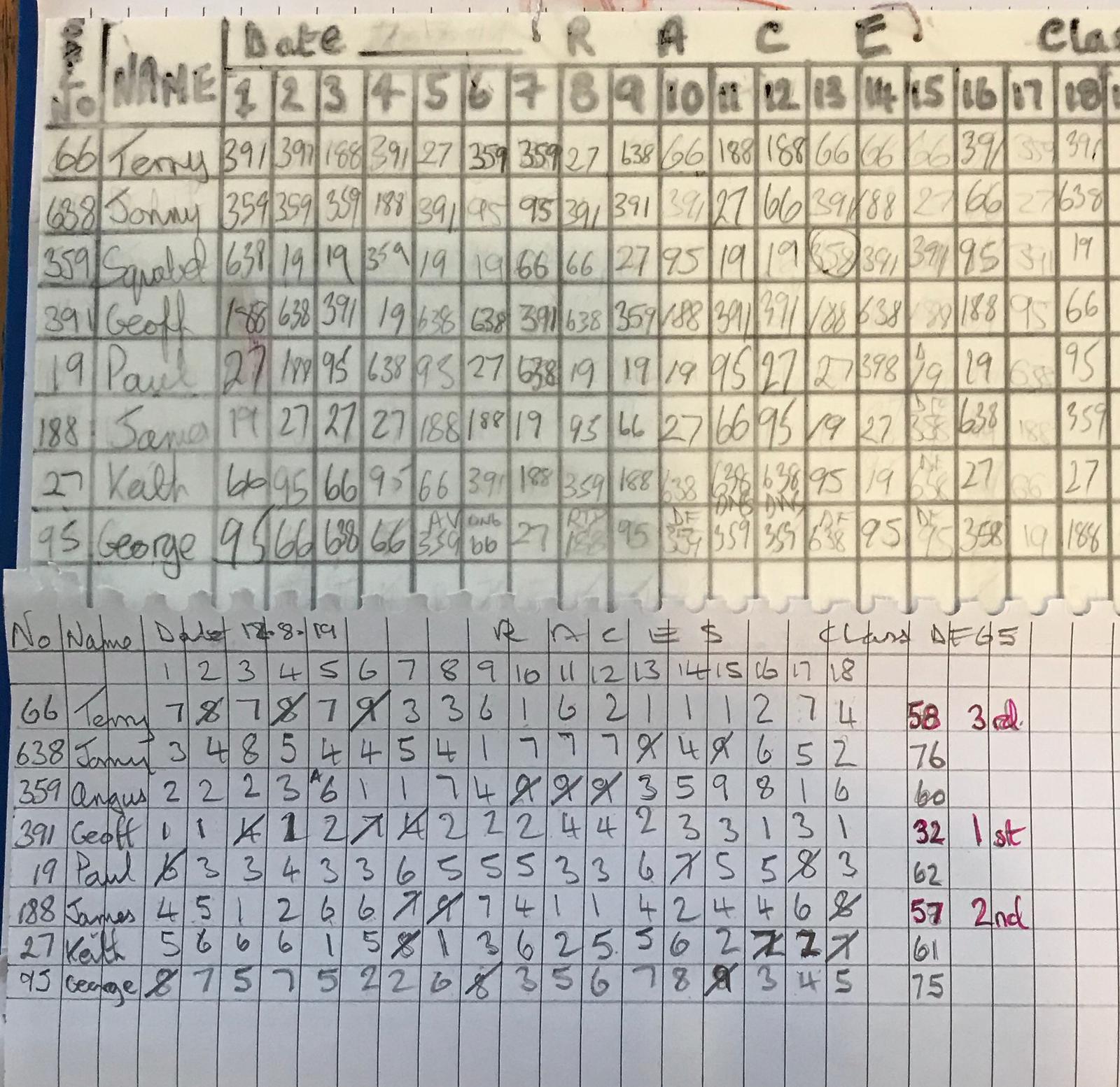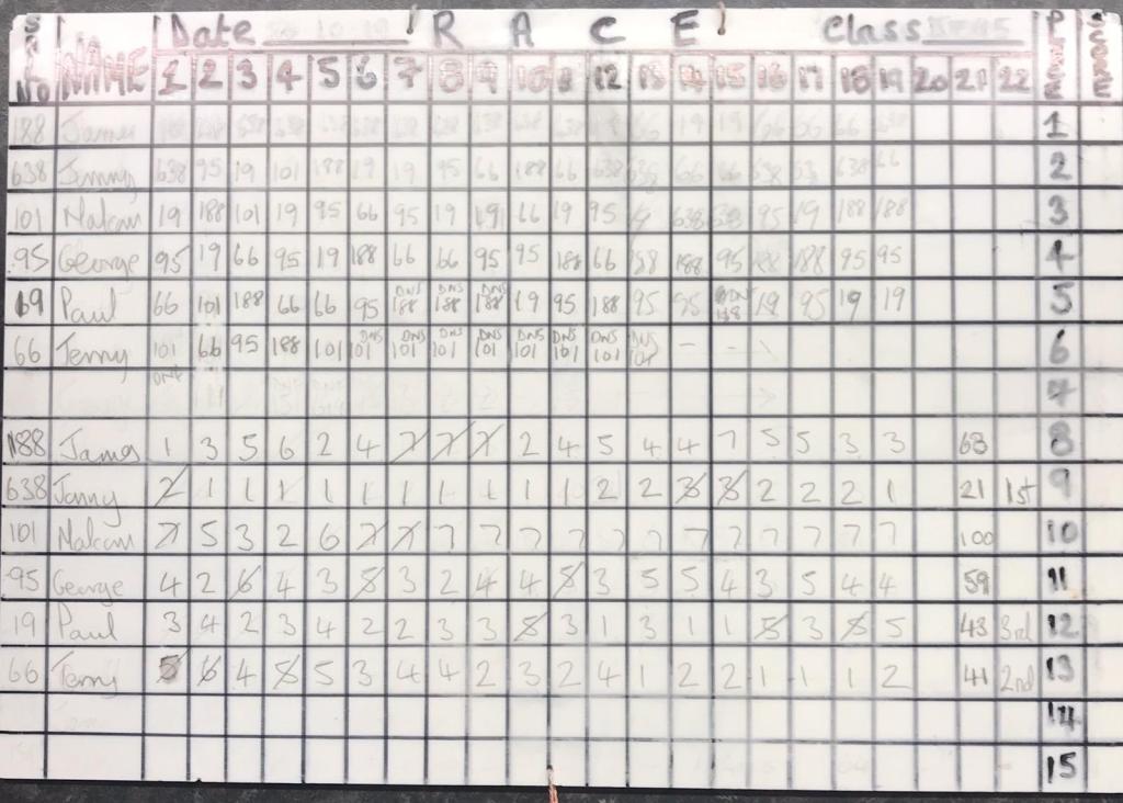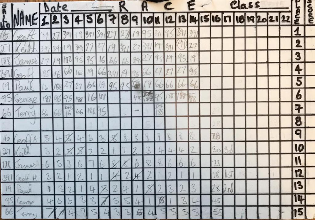 It is often said that the results never truely reflect how close the racing is in this class, but today they do with Keith taking second on count back to Glenn. Keith’s second place in race 10 by about a bumpers width from Glenn made all the difference in the end.