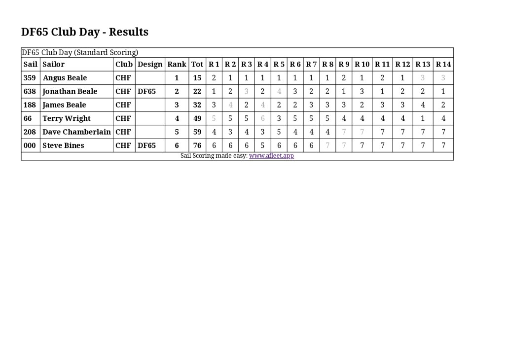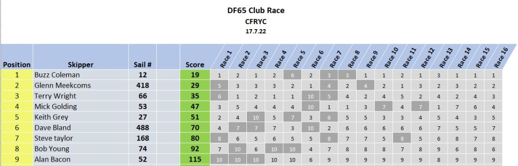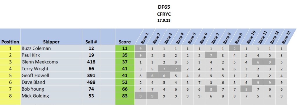 So, Buzz is our DF65 club champion, the guy who does the scores came second again &, possibly a little surprised John just pipped Peter to 3rd place on count back, both edging out Dave by just 1 point, which I feel is a good reflection of just how close the racing has been over the series.