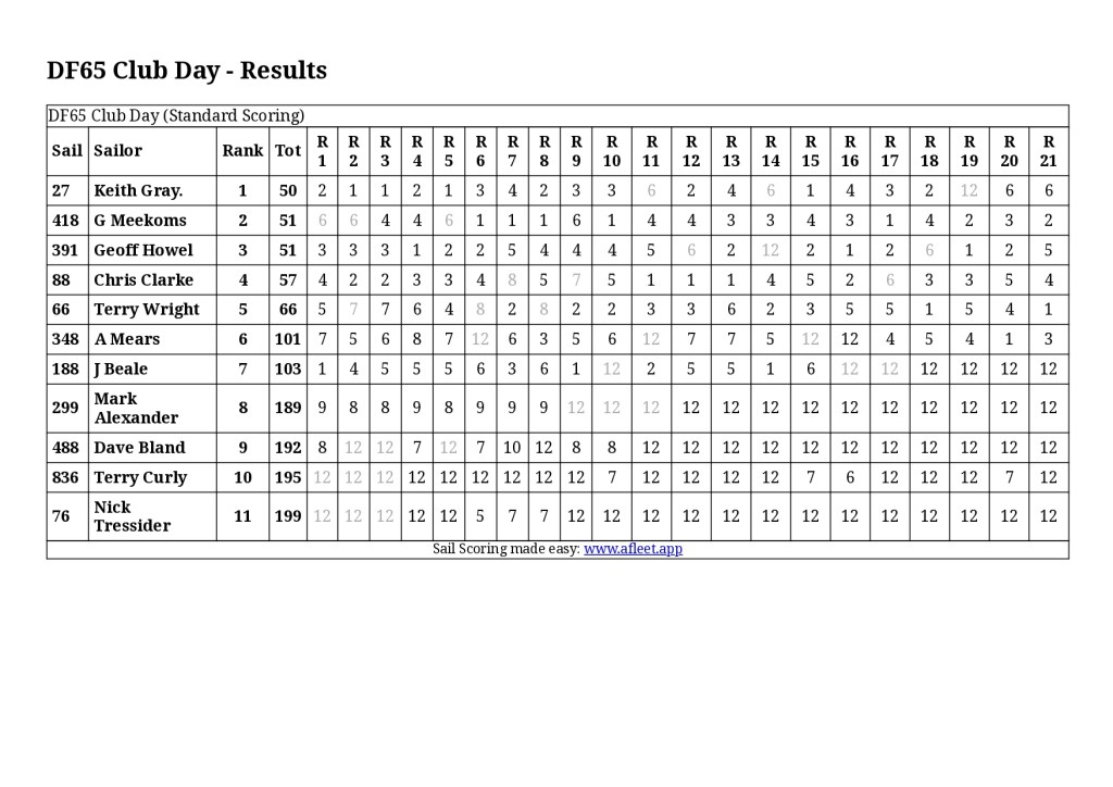 Autum Series Results 2018 DF65 Autumn Series. Results. After 11 rounds this series proved to be a very close thing on points. Both our main contenders didn’t have a particularly good day