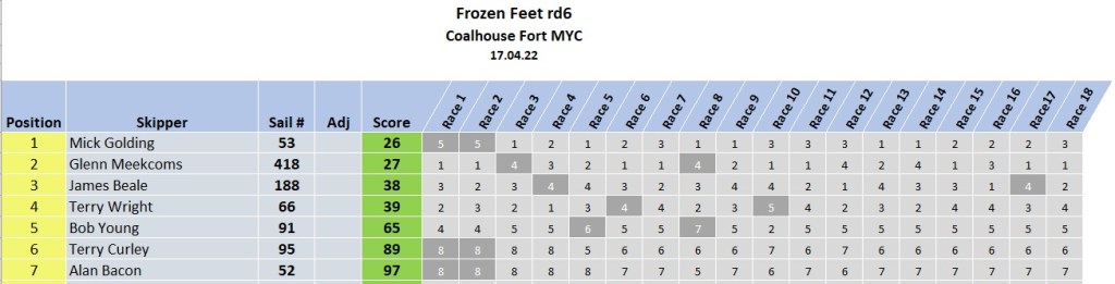 Keith left us at midday, & the remaining skippers called it a day after another 4 races. Thank you to all who braved the chill & supported the event today.