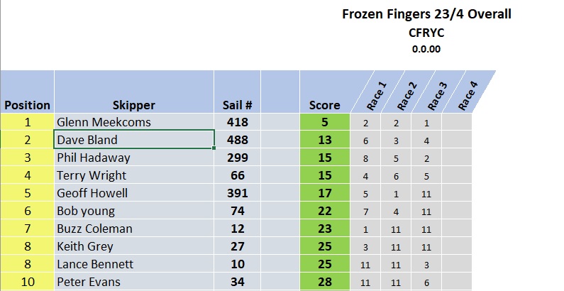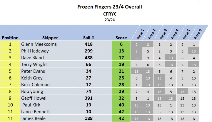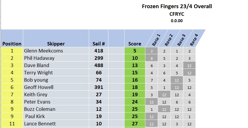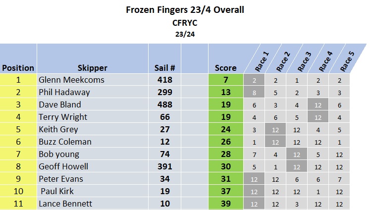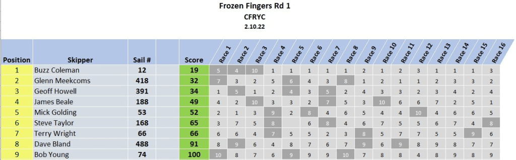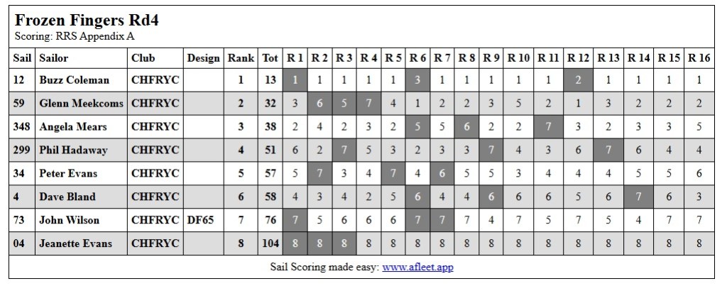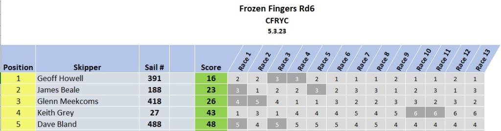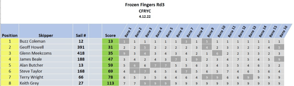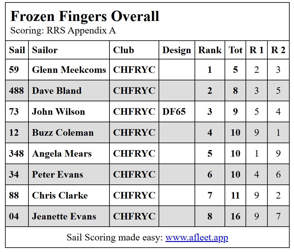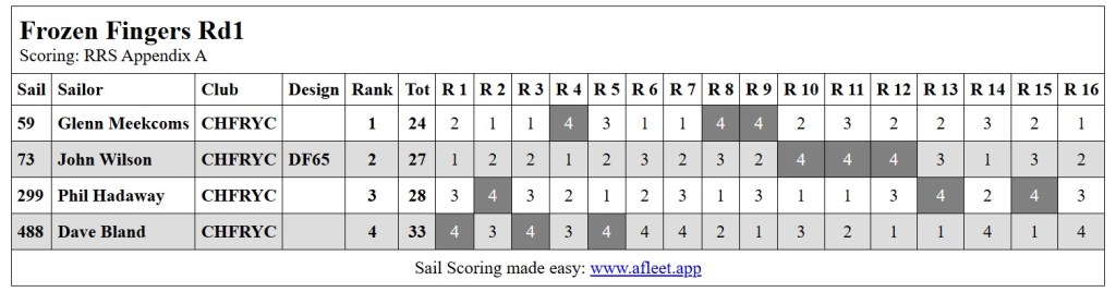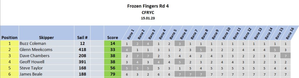 Tricky shifts & puffs with a mixture of A & B rigs along with cold fingers challenged all today, but we still managed some good racing.