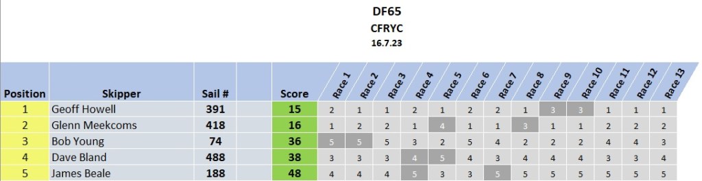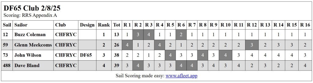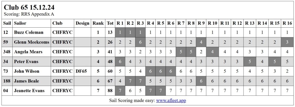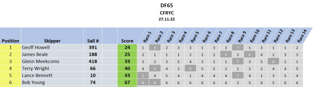 This is the last DF65 event of 2025, & as class captain can I thank everyone who has raced this year, providing some excellent racing, lots of great regattas, plenty of laughs & making the job of class captain a complete joy. I hope all members have a great Christmas & look forward to some great times in 2025. Glenn