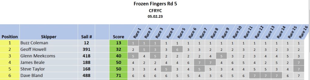 Congratulations to Buzz on the overall win, and thanks to all the sailors for another great day on the water.