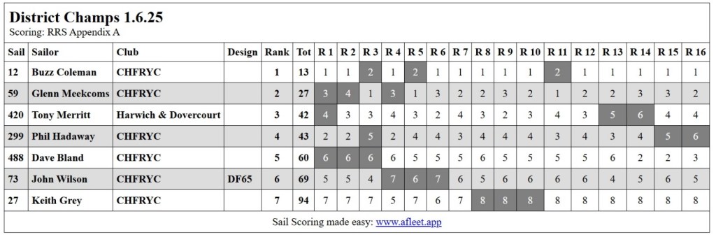 Coalhouse Fort Radio yacht Club hosted this year’s DF65 district championship with just 7 helms contesting the trophy.
