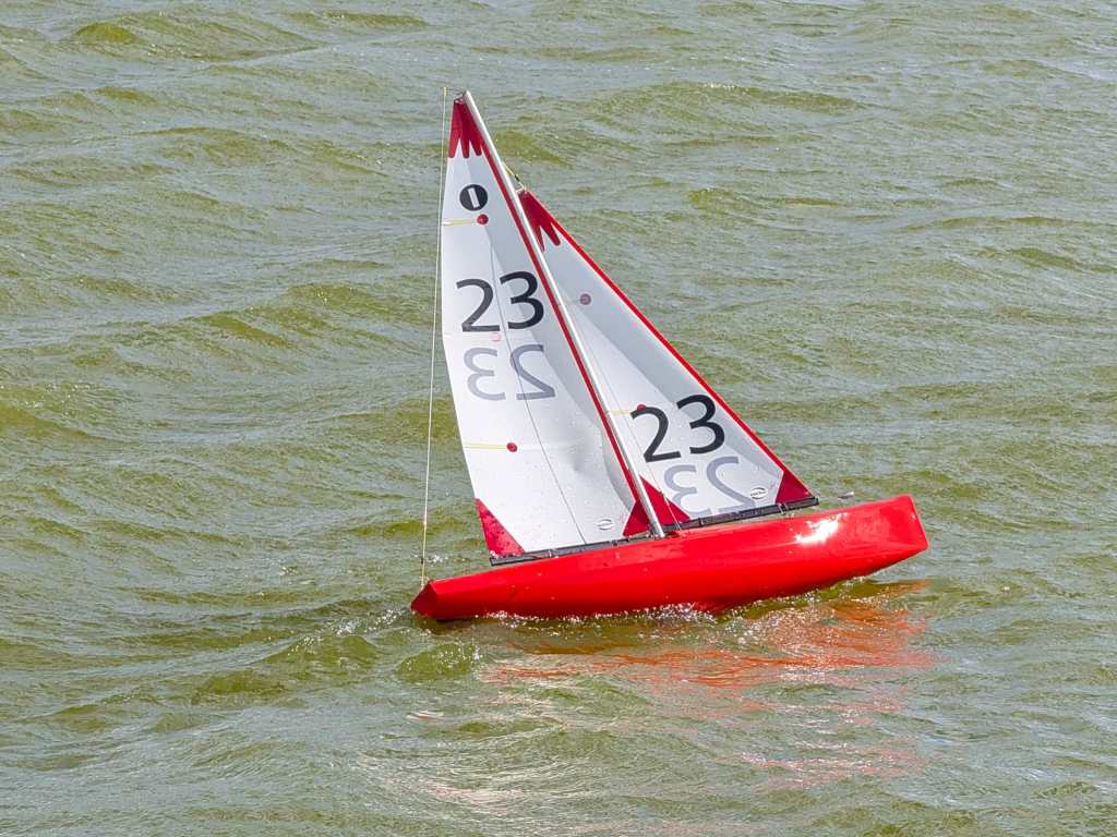 During the lunch break the remaining four helms took the opportunity to change down to ‘C’ rigs, as the wind had increased to around 20mph with frequent stronger gusts sweeping across the water. For several of the fleet it was the first outing for their smallest rigs, so plenty of tweaking and adjustment followed as everyone searched for the sweet spot in the stronger breeze. Once back on the water it quickly became clear just how lively these one-metre yachts can be when properly powered on the smaller rigs. Even with the heavier wind and white crests appearing on the waves, the boats proved surprisingly controllable. Perhaps more surprising was how close the racing became, with the entire fleet often separated by only a few feet as they charged around the course.