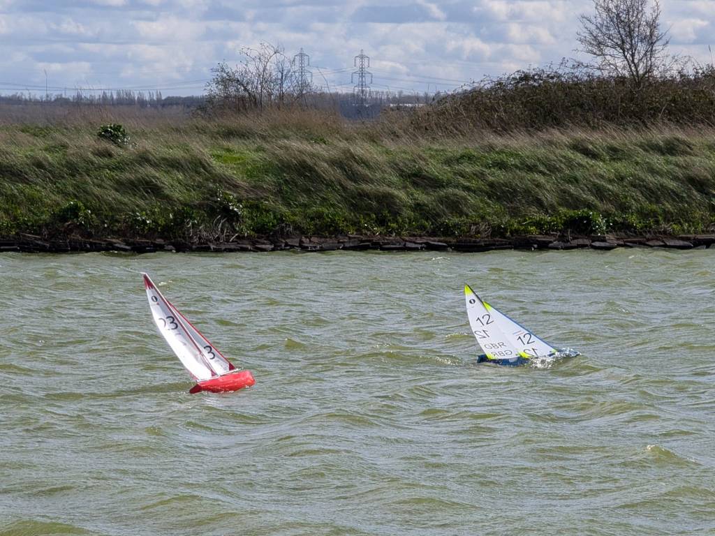 Round 4 of the Numb Thumbs Championship saw the first outing for the IOMs this year, with five helms assembling bankside in anticipation of the day’s racing. Despite a forecast easterly wind, competitors were pleasantly surprised to find the breeze was actually more northerly, allowing a decent and well-balanced course to be set: Start 13 & 14, Yp, 13p, Yp, 13p, finish 11 & 12.