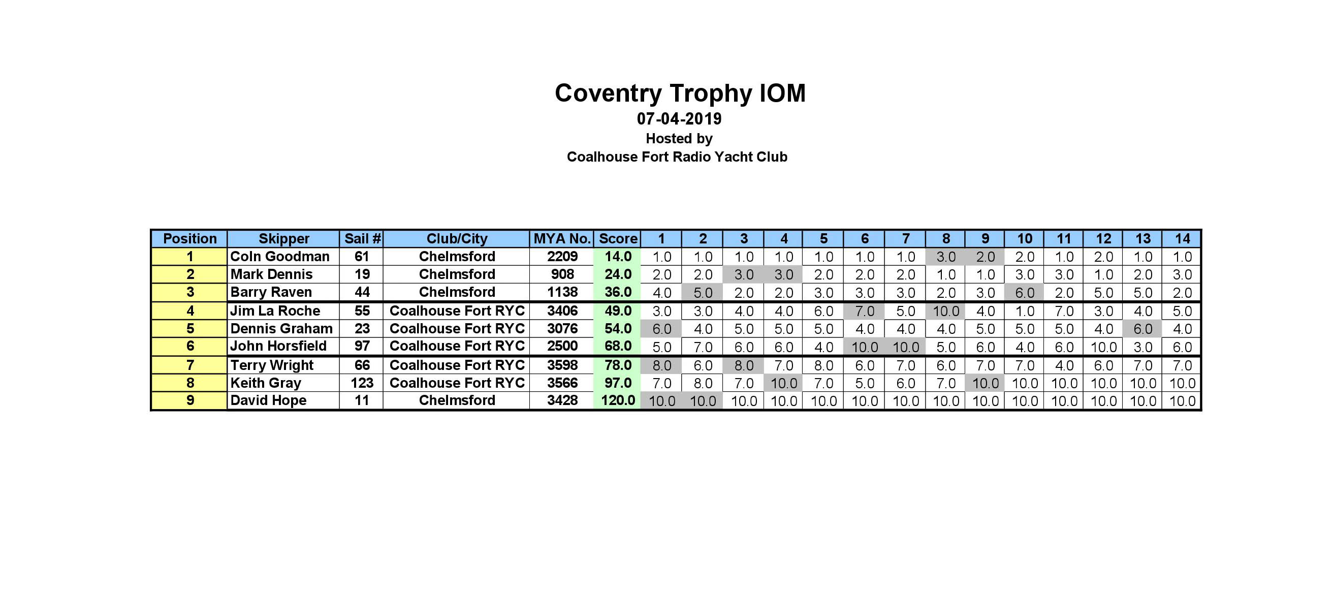 IOM Thames Trophy Results