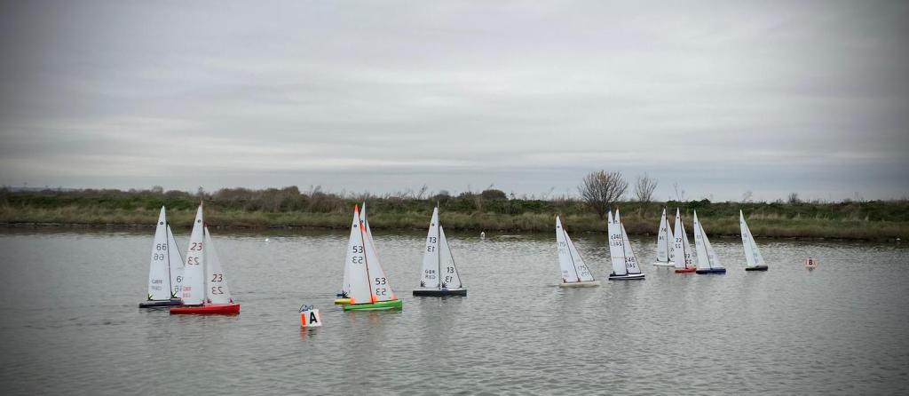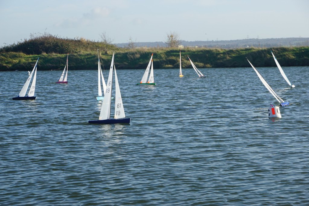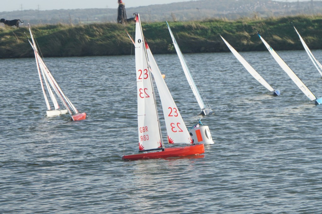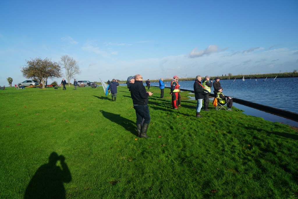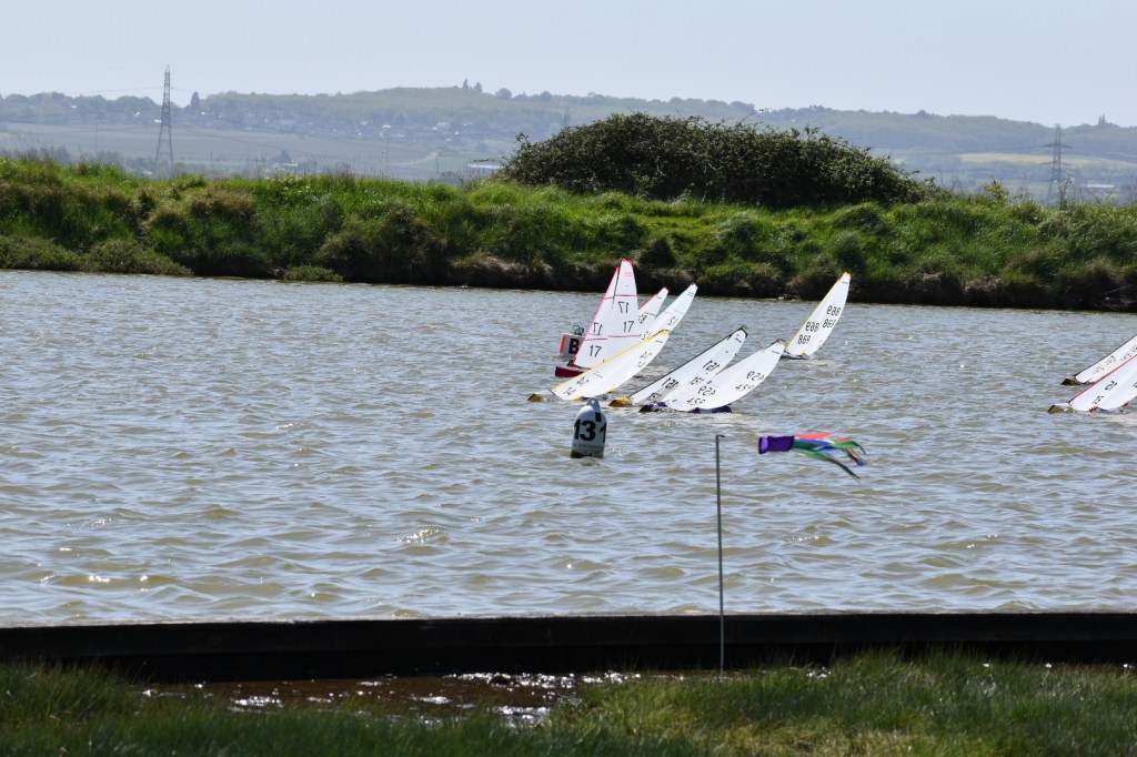Racing resumed after lunch with 2 races on the same course, albeit with the wind a little stronger & starting to swing easterly. The change in wind direction finally forced a course change for race 11, as boats were starting to reach to the windward mark, sadly, the prevailing conditions made this new course shorter than desirable. 2 races were held on the new course before the wind returned, almost to its original direction enabling the longer course to be sailed once again, admittedly with the windward mark much further from the bank. The final 4 races were completed on this course, but the position of the new windward mark did cause some a little difficulty judging distance. Whilst the official last race time was 3.30pm, the finish of the 16th race at 3.20 pm brought in the 3rd discard & the excuse to call it a day after the long distance walked, which all present agreed to.