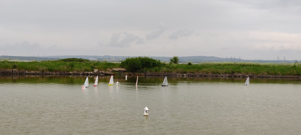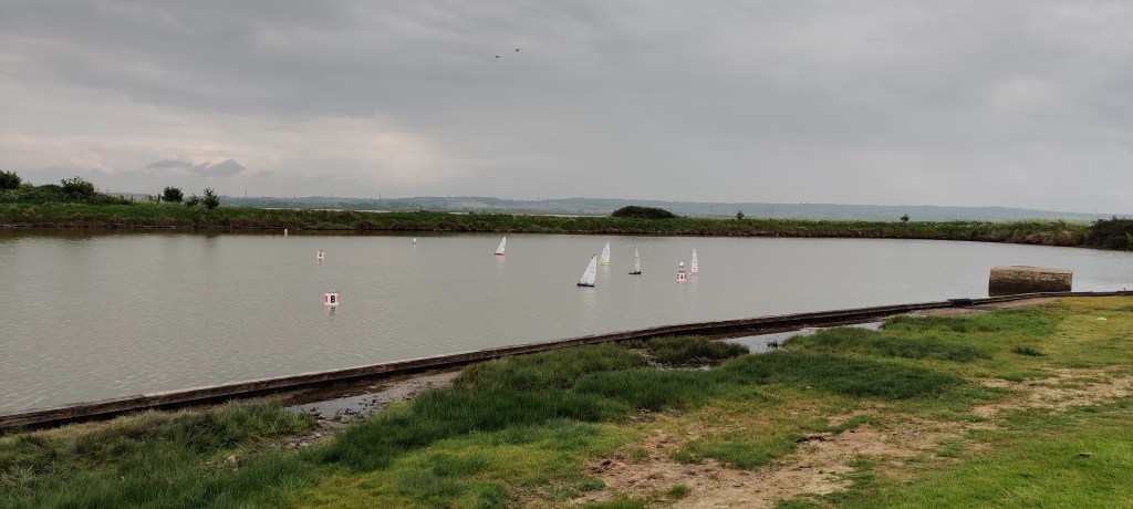 Arriving at the lake Side at Coalhouse Fort Radio Yacht Club we were pleasantly surprised to fin a nice solid Northerly breeze straight down the lake, just as forecast, but the wind gods were just teasing! As the last of the 16 skippers arrived a small cloud front moved over the Thames and stripping all wind from the lake before moving ENE but very light and shifty with growing gusts.